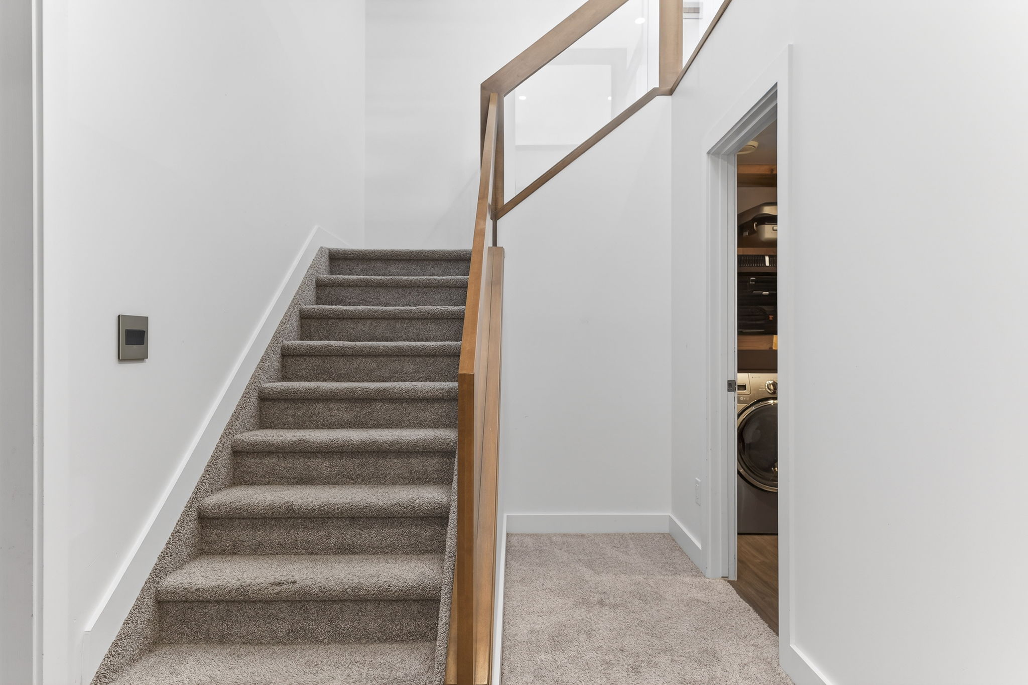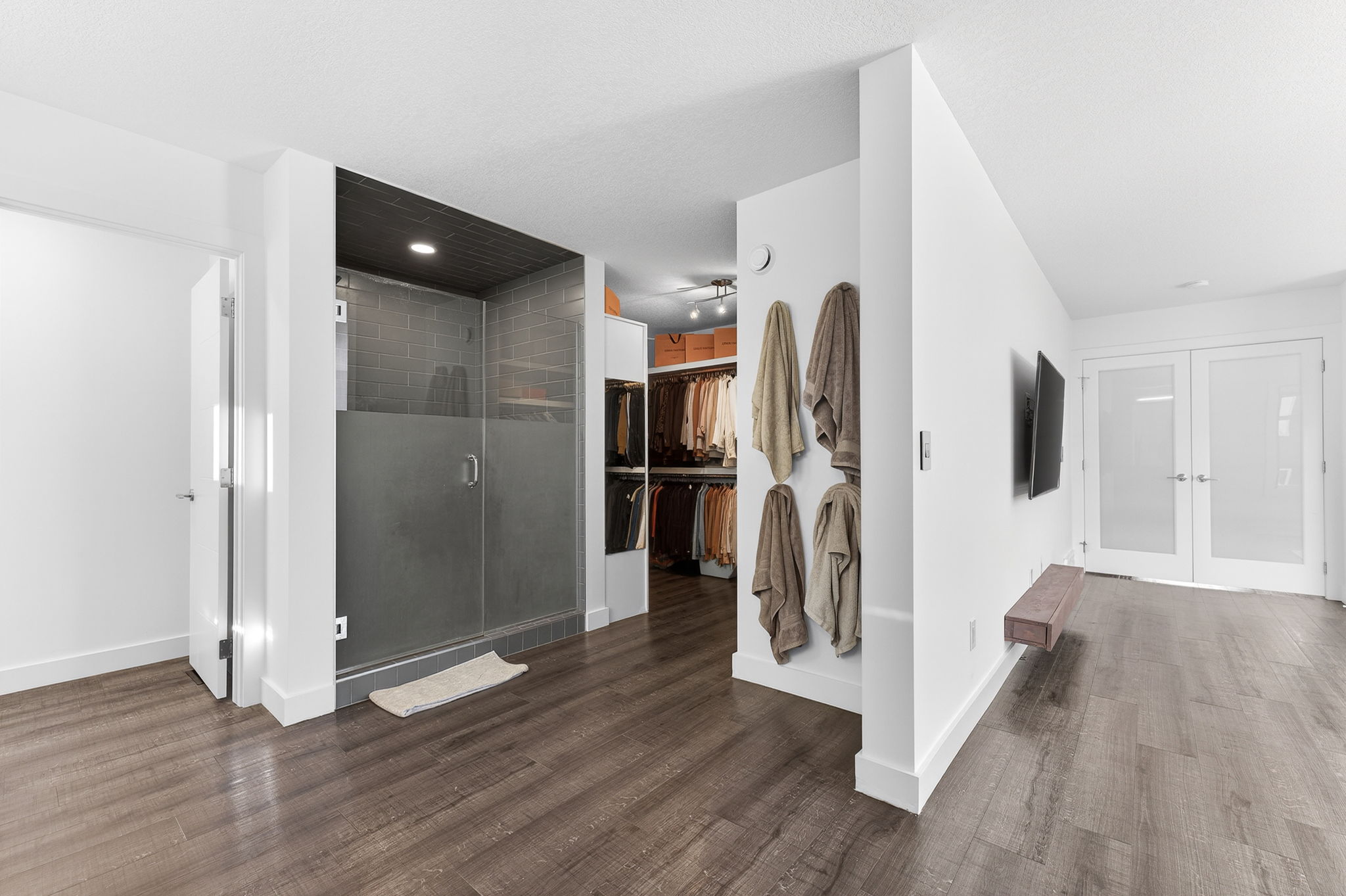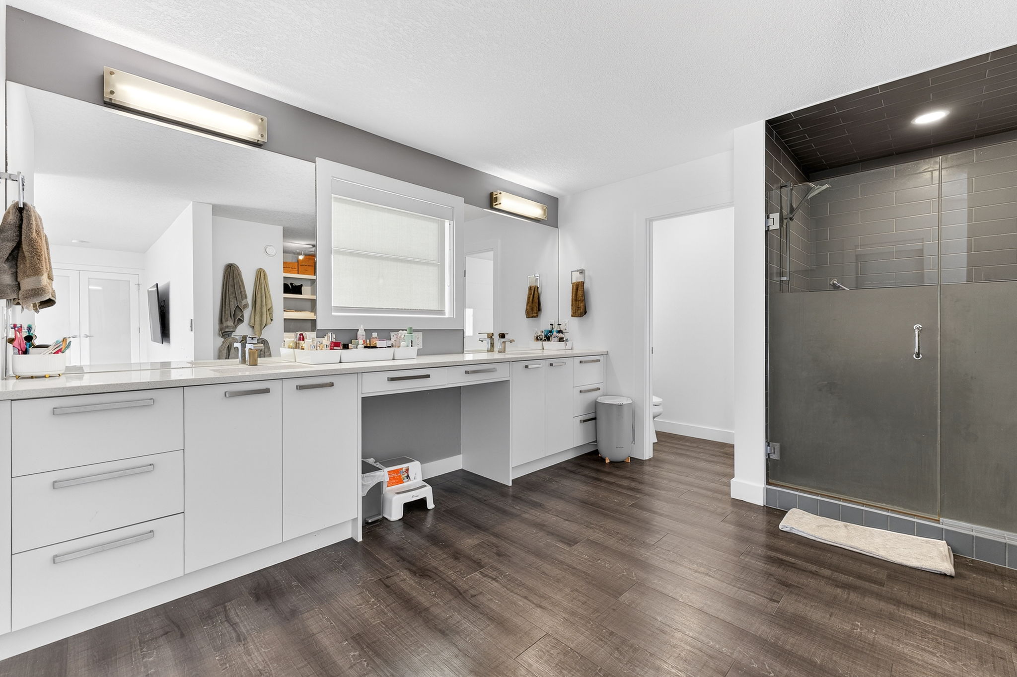 Welcome to this custom-built Kanvi home in “ONE@Windermere”. This popular “Hybrid” model features a grand foyer, clean sightlines, and large windows that floods the home with natural light. The main floor offers a chef’s inspired kitchen with a Bosch gas stove, steam wall oven, and a 9’ quartz island that flows into the great room, anchored by a 100” Napoleon fireplace on a concrete tile feature wall. Upstairs, you’ll find 3 good-sized bedrooms, a generous bonus room and a tech loft with wraparound built-in desk. The heated “man-cave” garage boasts tall ceilings and a tandem bay, perfect for a third vehicle or workshop. The finished basement adds an extra bedroom, full bath, recreation area and home gym. Storage is thoughtfully integrated throughout, including a commercial-style shoe closet and spacious “his and hers” closets in the primary bedroom. Fully finished with AC, a low-maintenance front yard and a pressure treated deck, this home perfect for busy families or professionals.